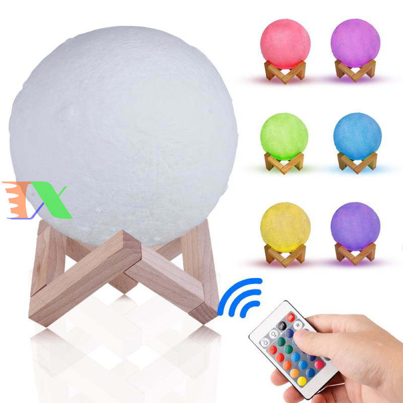 Đèn ngủ mặt trăng, Đèn mặt trăng 7 màu 20cm, Đèn trang trí Moon Light 3D