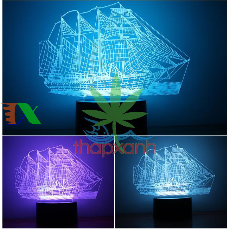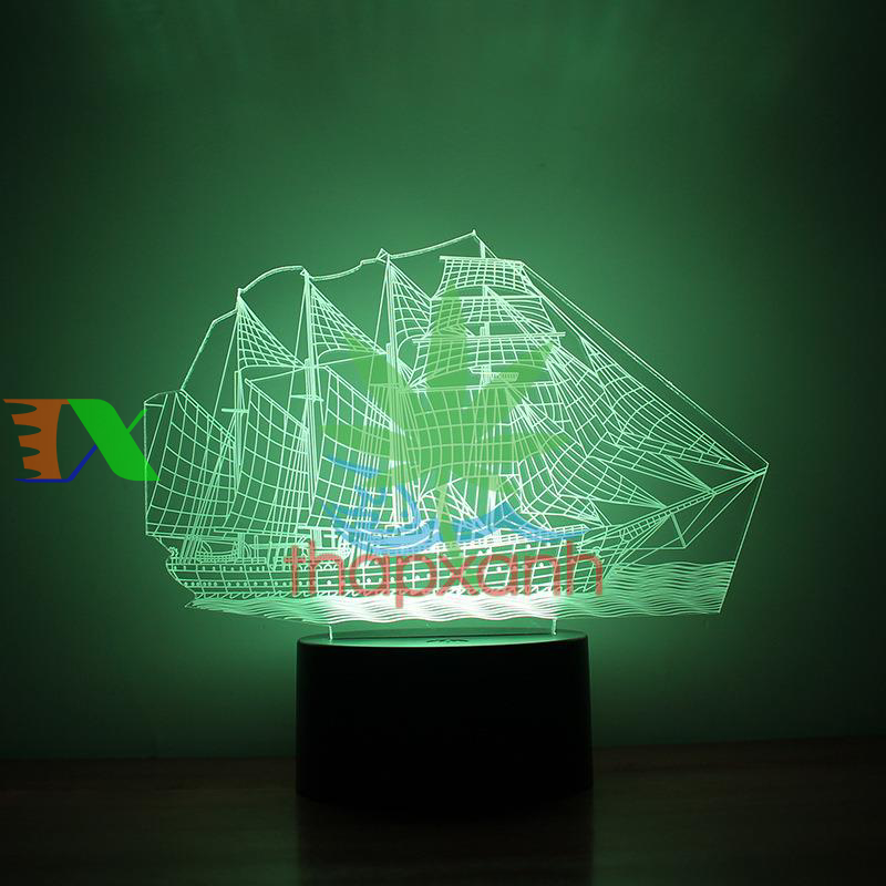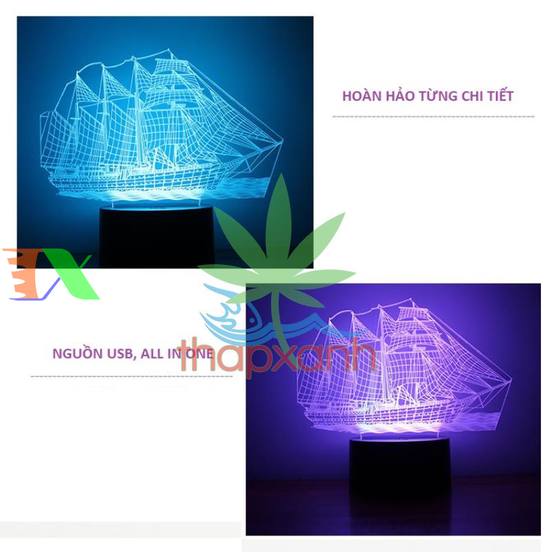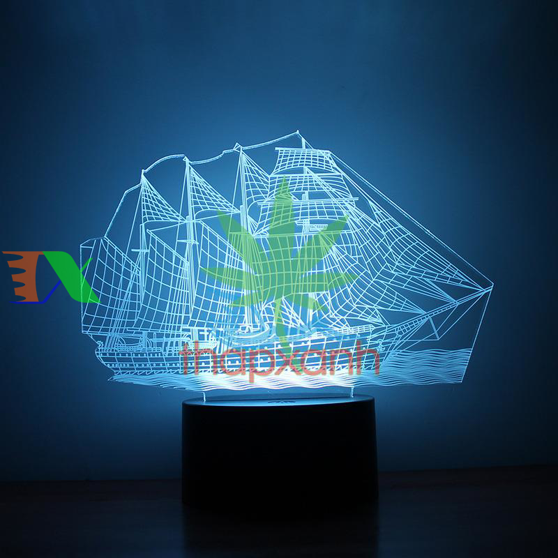 Đèn ngủ, đèn trang trí Led 3D, Đèn ngủ 7 màu (đỏ, xanh lá cây, xanh nước biển, vàng, xanh, tím, trắng) thiết kế hiện đại với hình khối sắc nét, ánh sáng êm dịu, mang hơi thở đại dương, đưa bạn và em bé vào giấc ngủ ngon. Dễ dàng thay đổi mày sắc bằng nút bấm điều chỉnh.