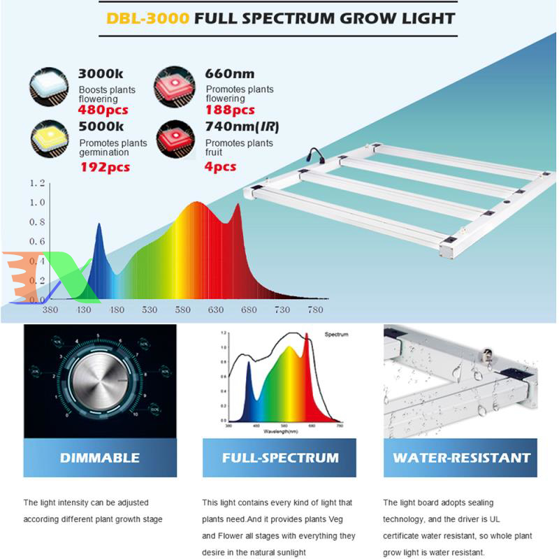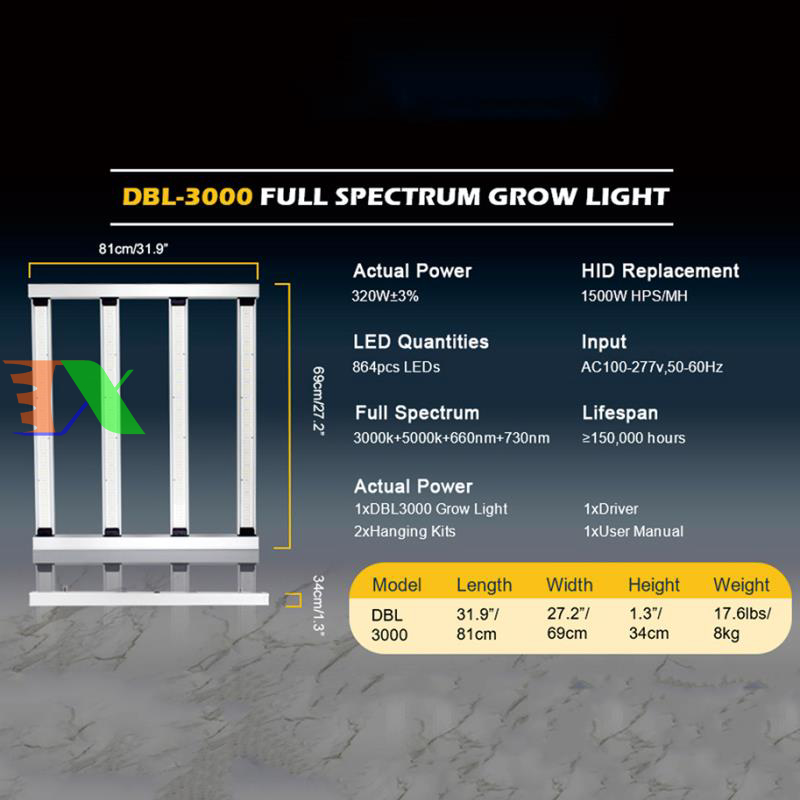 Đèn trồng cây Lượng tử DBL3000, Led grow lights chip Samsung 1500W, Đèn trồng rau trong nhà