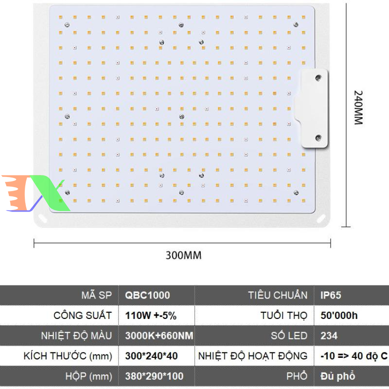Công suất Công suất Led : 1000W / Công suất tiêu thụ điện 110W