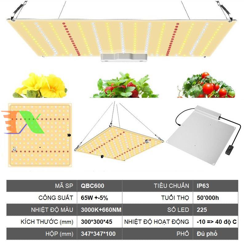 Đèn trồng cây Lượng tử QBC600, Led grow lights chip Samsung 600W, Đèn trồng rau trong nhà
