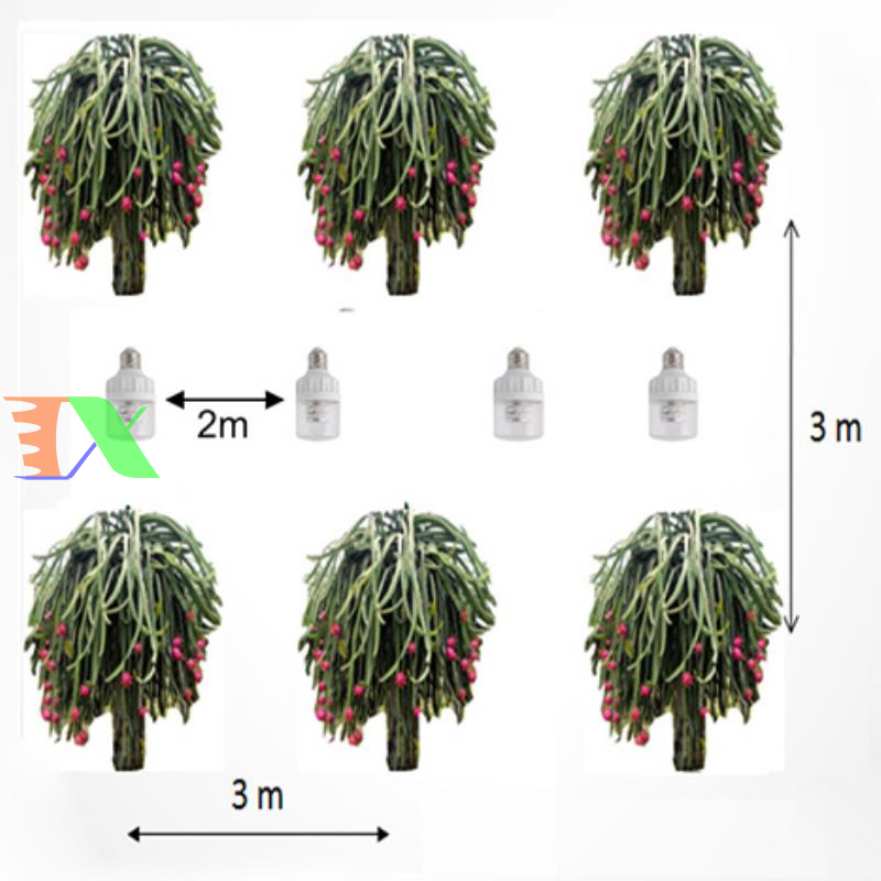 Bóng led xông thanh long có thành phần ánh sáng đã được nghiên cứu phù hợp với việc kích thích ra hoa trái vụ trên cây thanh long. Tỷ lệ ra hoa vừa phải, ít tốn công lặt bỏ, tránh suy kiệt cây thanh long.