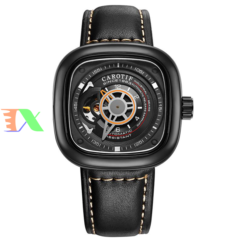 Đồng hồ nam CAROTIF máy cơ chạy tự động kính khoáng dây thép cao cấp, Đồng hồ cơ tự động, vật liệu thép không gỉ, dây thép, kích thước 40mm, độ dày 12mm, trọng lượng 125g .