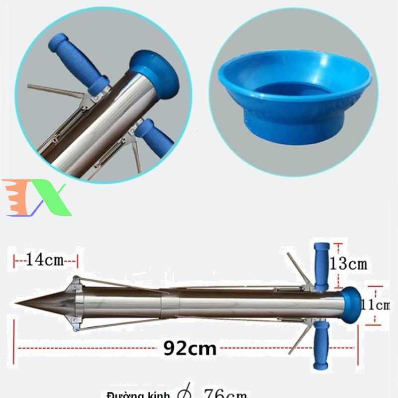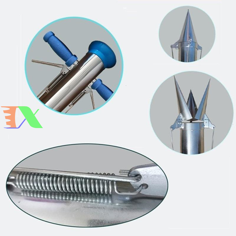Chất liệu làm bằng Inox (Thép không gỉ) độ bền cao, mũi chia ba sắc bén, dễ dàng đâm sâu vào nền đất. Máy trồng cây tự động TCD-76.2 2 tay cầm, Ống trồng cây tự động, Dụng cụ trồng cây gieo hạt.