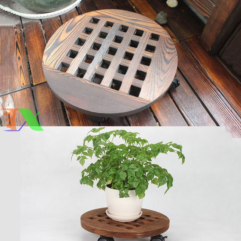 Giá để chậu hoa bằng gỗ TDG-40 cm, Kệ để chậu cây cảnh 4 bánh, Đế chậu cây có bánh xe lăn