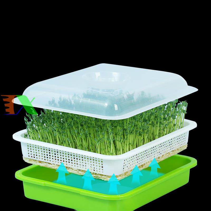 Khay trồng rau mầm thủy canh chuyên dụng, sản phẩm làm bằng nhựa PP nguyên sinh, có độ bền cao không độc hại. Khay có cấu tạo 3 lớp, lớp dưới chứa nước, lớp trên có cấu trúc dạng lưới để rau có thể cắm rễ xuống hút dinh dưỡng