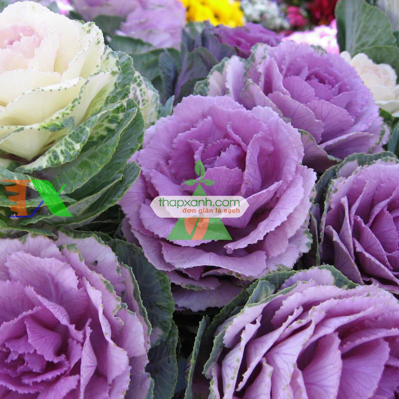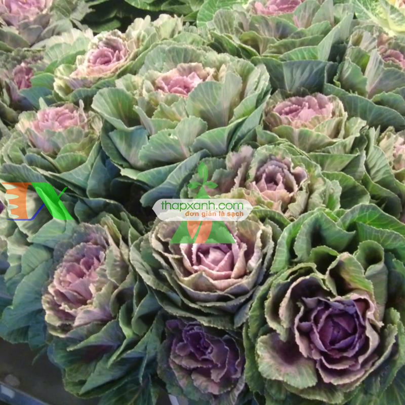 Đây là loài Bắp cải có có 2  màu lá chính: màu xanh ở những tán lá bên ngoài và những tán lá trong cùng có màu tím rất đẹp. Nhìn cả cây bắp cải cảnh như một bông hoa tím được bao bởi những chiếc lá xanh vô cùng bắt mắt, lại rất đẹp, độc và lạ, cây Bắp cải cảnh có chiều cao thấp nên rất phù hợp để trồng trong chậu nhỏ, bầy trong nhà, phòng làm việc.