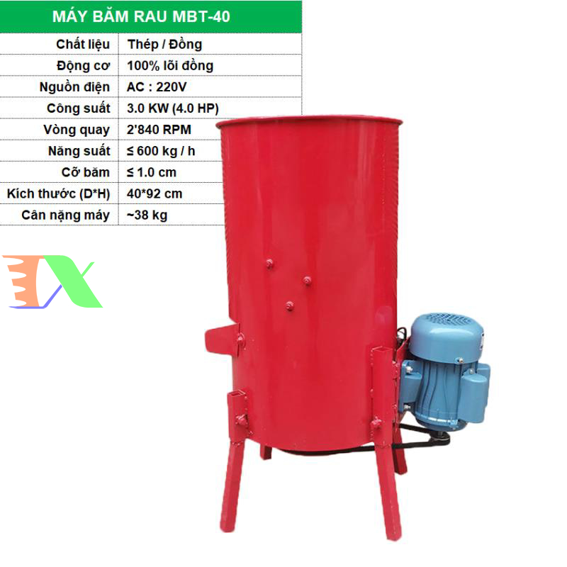 Máy băm rau củ MBT-40 là một sản phẩm giá thành hợp lý trong hệ thống máy nông nghiệp đang được Thapxanh cung cấp trên thị trường. Thiết bị được thiết kế để phù hợp cho các gia đình, các trang trại chăn nuôi nhỏ. Máy có kích thước vừa phải, tiện lợi và đặc biệt là hoạt động bằng động cơ điện 1 pha.