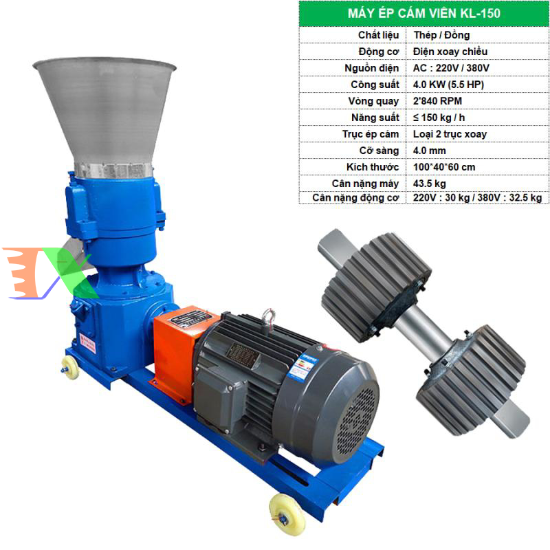 Sử dụng dầu nhớt cho động cơ xe máy để đổ vào hộp số của máy ép cám (Vị trí hộp số nằm bên dưới cối ép cám). Số lượng nhớt với loại máy KL-150 và KL-160 là 1kg nhớt. Máy KL-210 đổ 6-8kg, máy KL-260 và KL-300 đổ 12-14kg nhớt.