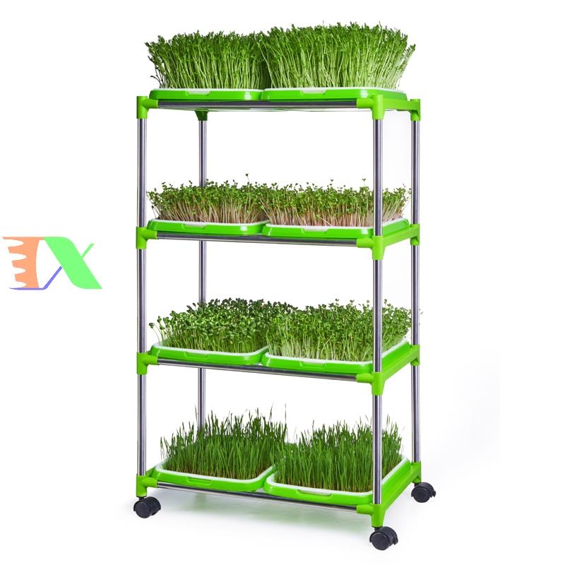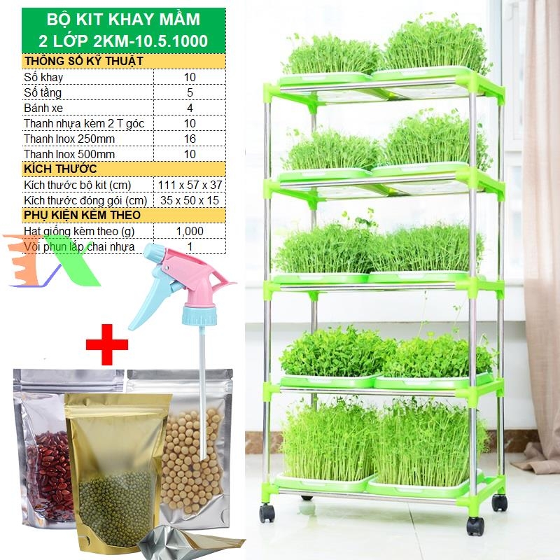 Khay trồng rau mầm 2 lớp của Tháp Xanh: Làm từ nhựa nguyên sinh, có độ bền cao, an toàn, không mùi, cực kỳ bền bỉ. Bao gồm lớp khay dưới chứa nước và lớp khay trên có các lỗ thoát nước để giữ hạt giống.