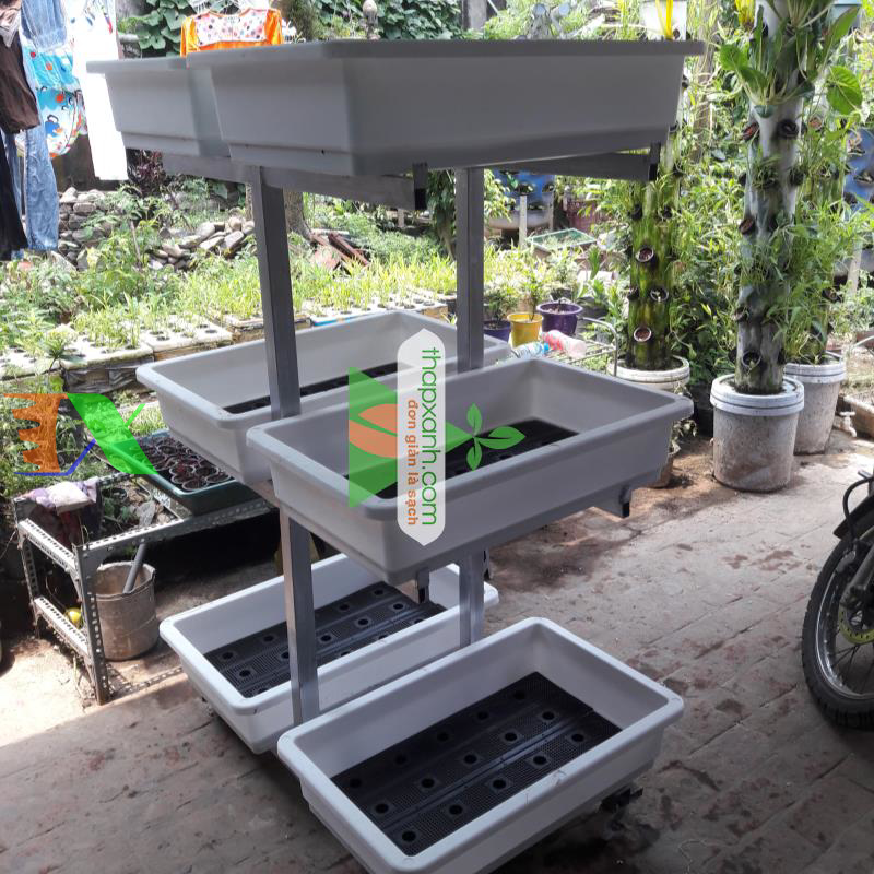 Kệ 3 tầng 6 chậu được thiết kế dành riêng đô thị dùng trồng rau, trồng hoa đều tiện lợi. Đặc biệt kệ ba tầng sáu chậu thiết kế đẹp mắt tiết kiệm diện tích phù hợp với chung cư, căn hộ có diện tích nhỏ.
