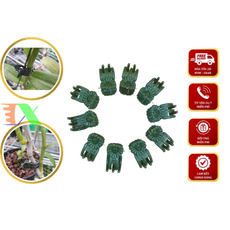 - Kẹp bướm cố định Hoa Lan là loại kẹp chuyên dụng dùng để kẹp cố định ngồng lan, giữ cây theo phương thẳng đứng vào que cắm tránh tình trạng dập gãy nghiêng ngả khi cây đang ra hoa, khi cận chuyển chậu hoa đi xa. Thuận tiện hữu ích cho quá trình trồng lan của các nhà vườn.