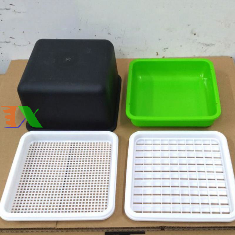 Khay trồng rau mầm thủy canh chuyên dụng, sản phẩm làm bằng nhựa ABS nguyên sinh, có độ bền cao không độc hại. Khay có cấu tạo 2 lớp, lớp dưới chứa nước, lớp trên có cấu trúc dạng lưới để rau có thể cắm rễ xuống hút dinh dưỡng