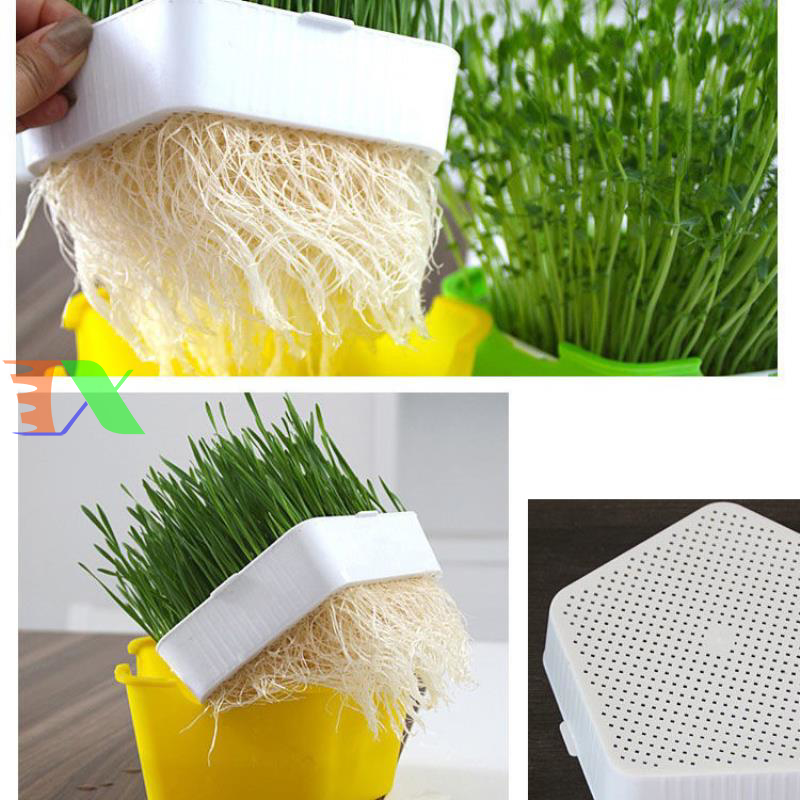 Khay có cấu tạo 3 lớp, lớp dưới chứa nước, lớp trên có cấu trúc dạng lưới để rau có thể cắm rễ xuống hút dinh dưỡng, nắp đậy giúp giữ ấm vào mùa đông làm mát vào mùa hè, cách ly tốt với môi trường. Chúng tôi có các sản phẩm : Khay trồng rau mầm thủy canh 2 lớp, Khay trồng rau mầm thủy canh 3 lớp có nắp đậy.