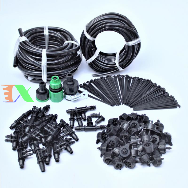 Bộ Kit 16 Đầu béc tưới 8 tia đầy đủ dây, phụ kiện TX-DIY-031, Bộ tưới cây, rau, hoa DIY tự lắp đặt