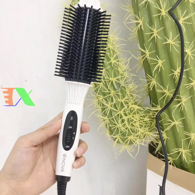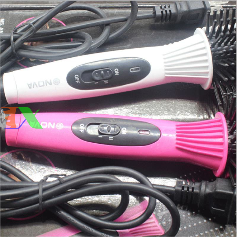 Lược và sấy điện xoay 360 độ có thiết kế lông chải bằng sợi tổng hợp cao cấp, hạn chế những hư tổn về tóc, Lược sấy điện NOVA không gây rối những hư gãy tóc.