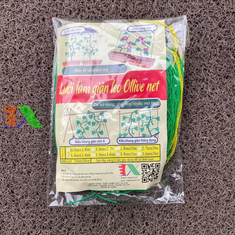 Lưới làm giàn leo là một sản phẩm mới đang được áp dụng vào kỹ thuật nông nghiệp. Lưới giàn leo cho dưa chuột, lưới giàn leo cho đậu, lưới giàn leo cho khổ qua.... v.v..., dễ dàng sử dụng, độ bên cao nên tiết kiệm được nhiều thời gian và chi phí cho việc làm vườn của bạn