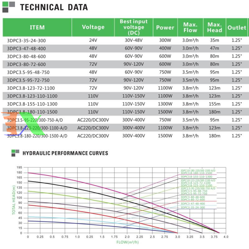 Máy bơm năng lượng mặt trời (3DPC3-35-24-300), Solar pump 24V300W Thường được dùng trong các hệ thống tưới tiêu cây trồng, dùng ở các địa phương không tiện cho việc sử dụng điện lưới