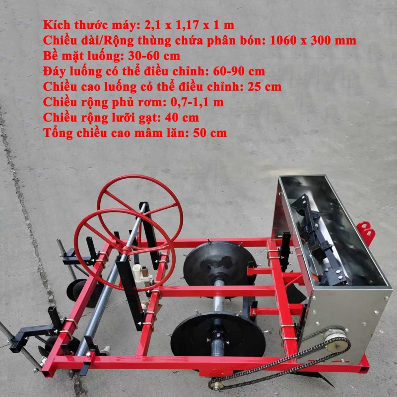 Với các thông số này, máy có tính linh hoạt cao, dễ dàng tùy chỉnh theo từng loại đất và từng loại cây trồng khác nhau.