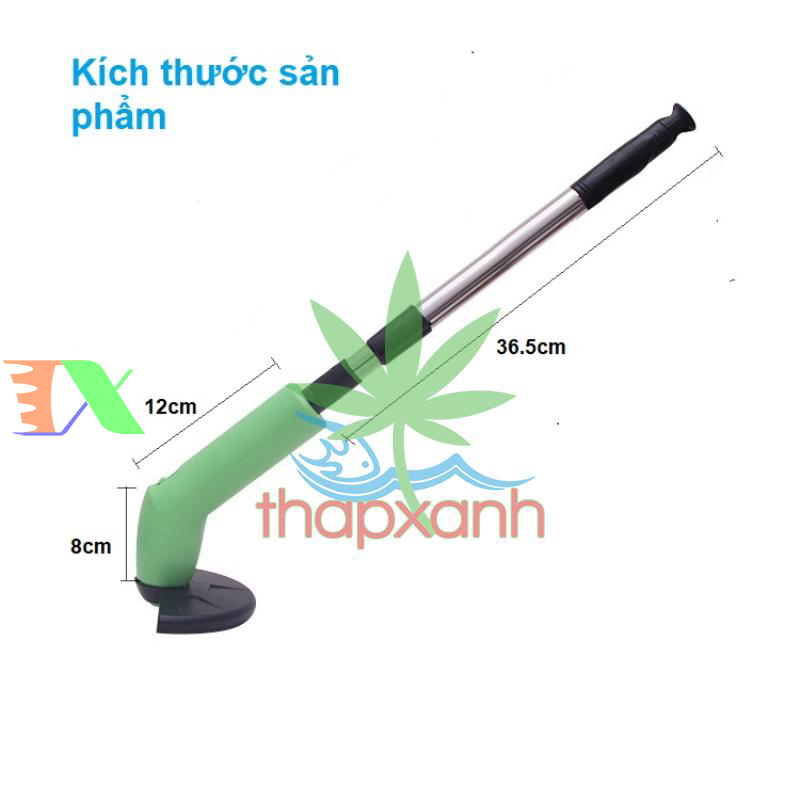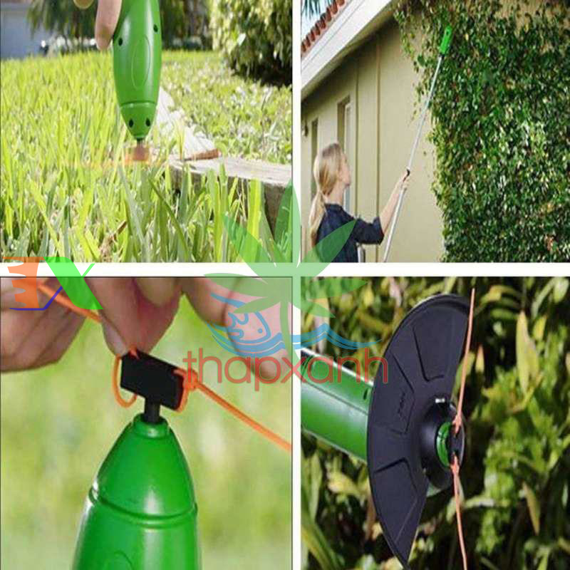 Gắn thân nhôm vào như vậy ta đã sẵn sàng cắt tỉa những bụi cỏ mọc dại trong vườn, chiều dài của thân nhôm tăng giảm được và rất nhẹ không lo mỏi tay hay phải khom người xuống để cắt..
