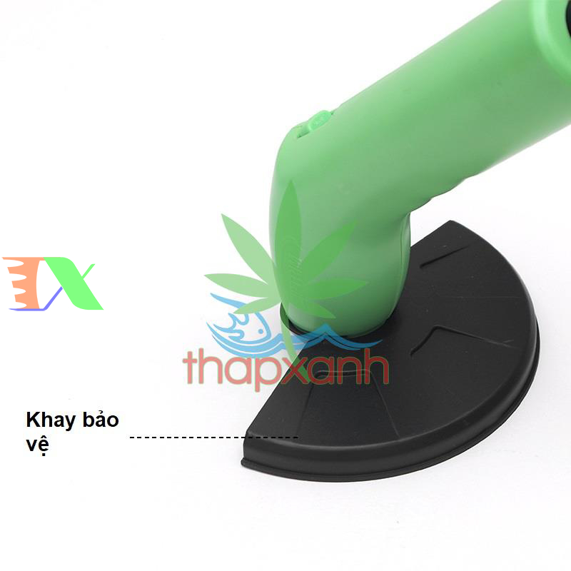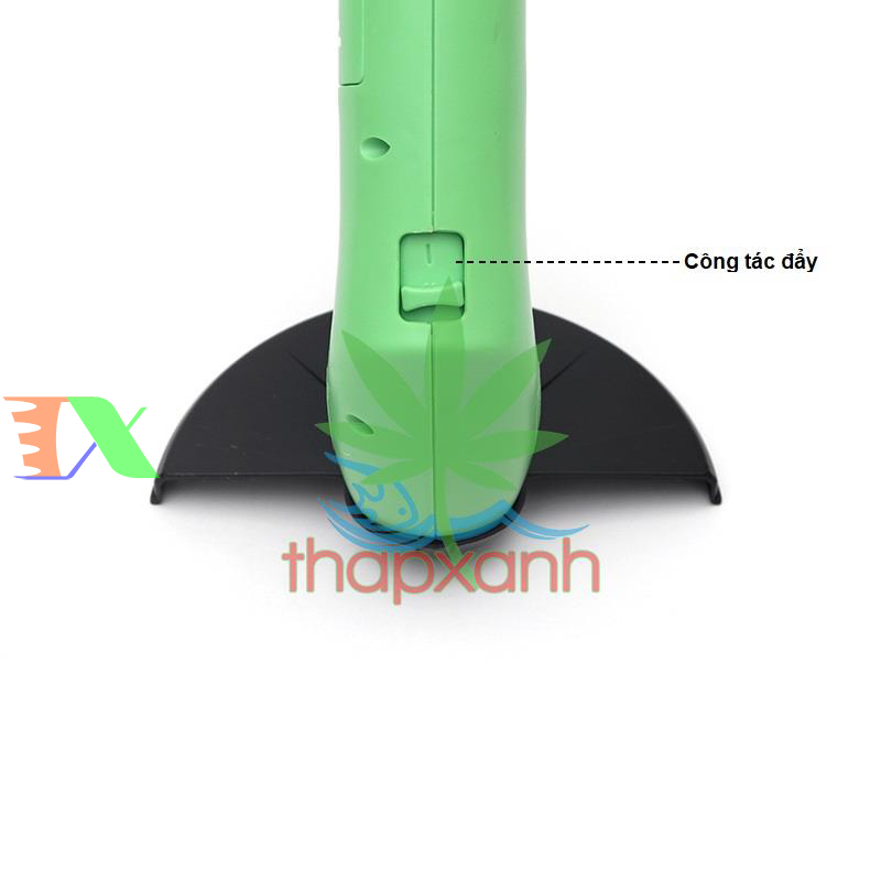 Phần đầu máy màu xanh có thể được tháo rời khỏi thân ống, nó hoặt động độc lập như một dụng cụ cầm tay mini, chúng ta có thể tỉa lại tán lá các chậu kiểng trên sân thượng hoặc khuôn viên vườn thận chí những chậu cảnh được trồng để bàn.