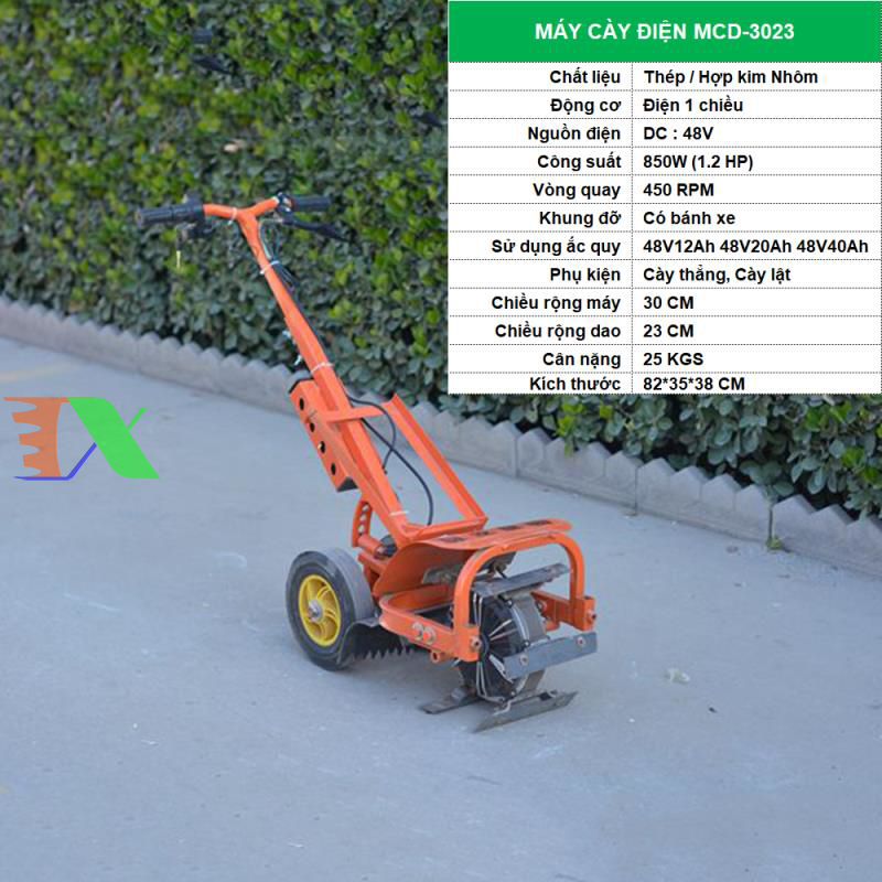 Máy cày chạy điện MCD-3023, Máy cày đa năng, Máy làm đất dùng ắc quy 48V 850W