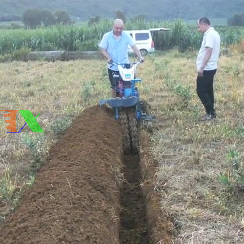 Máy đào rãnh đất dạng xích được thiết kế để đào đất thành rãnh, với công suất lớn, dễ điều khiển, là chiếc máy chuyên dụng cho nhà nông trong việc đào rãnh mía, đào rãnh cà phê, đào rãnh thoát nước, hoặc dùng để đào đường chôn ống nước.