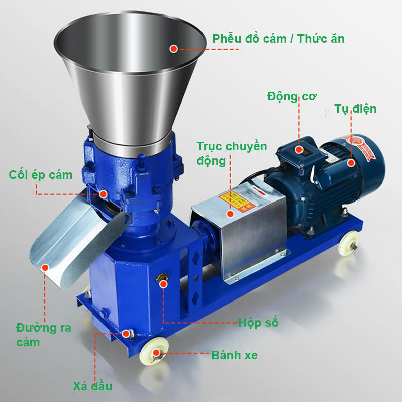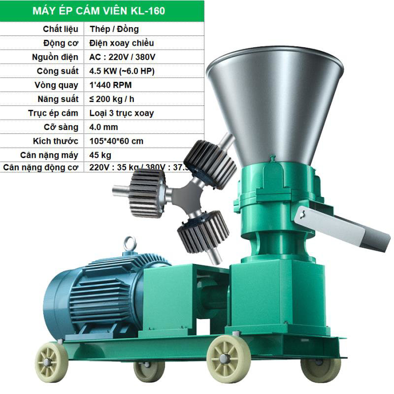 Máy ép cám viên KL-300 cho Gia súc, Gia cầm, Cá, Máy xay nghiền thức ăn đùn viên cám