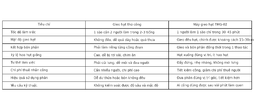 5.Ưu thế vượt trội của TMG02 so với gieo thủ công