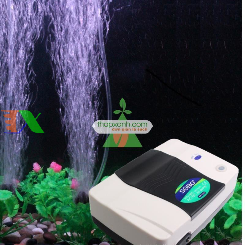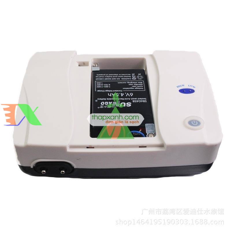 Công dụng : thổi khí oxy nuôi cá. Sử dụng được 2 vòi ( cho một hồ cá trung bình đến lớn). Sản phẩm gồm: Máy sủi tích điện. Máy sục khí SP-1000 (hay còn gọi Máy thổi ô xy). Có chức năng lưu điện bằng PIN 6V 4.5Ah.