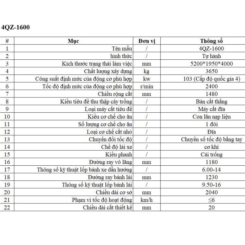 Máy 4QZ-1600 có thể thu hoạch liên tục với tốc độ ổn định, giúp năng suất tăng gấp 5–7 lần so với lao động thủ công.