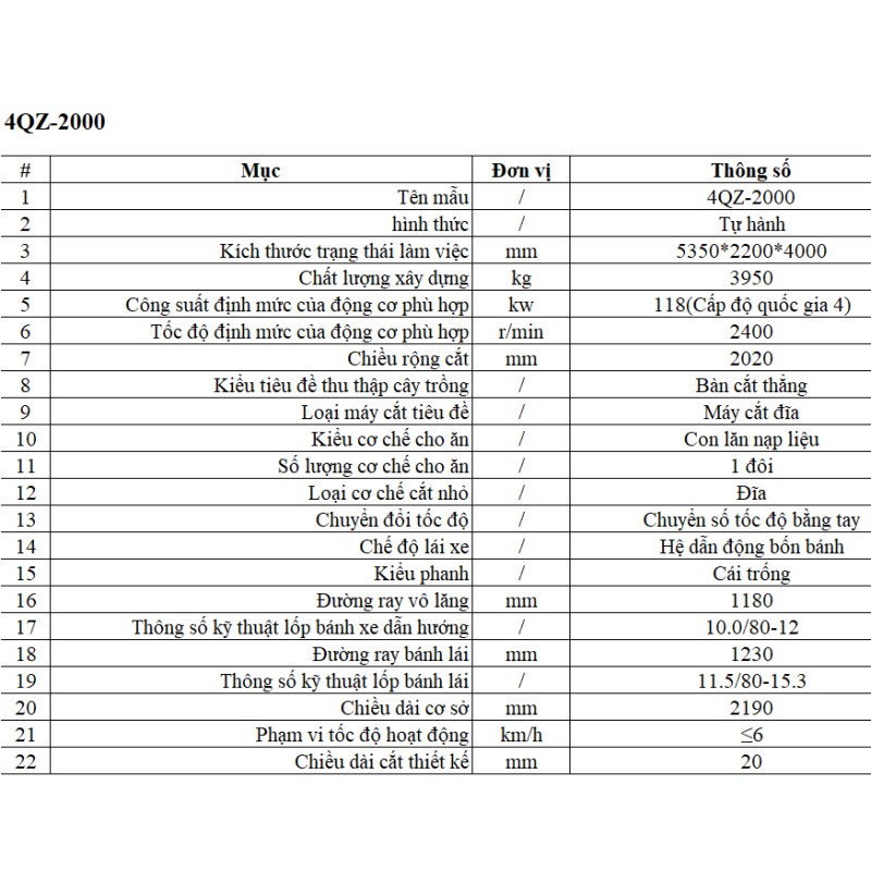 Với những thông số này, máy 4QZ-2000 chứng minh được sức mạnh vượt trội trong khâu thu hoạch sinh khối, đặc biệt ở các trang trại chăn nuôi quy mô lớn.