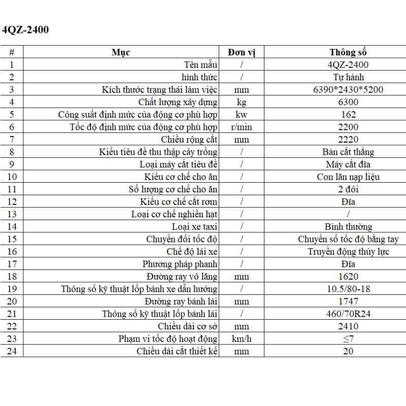 Những thông số này cho thấy 4QZ-2400 là dòng máy chuyên nghiệp, hiệu suất cao, hướng đến các trang trại chăn nuôi quy mô vừa và lớn.