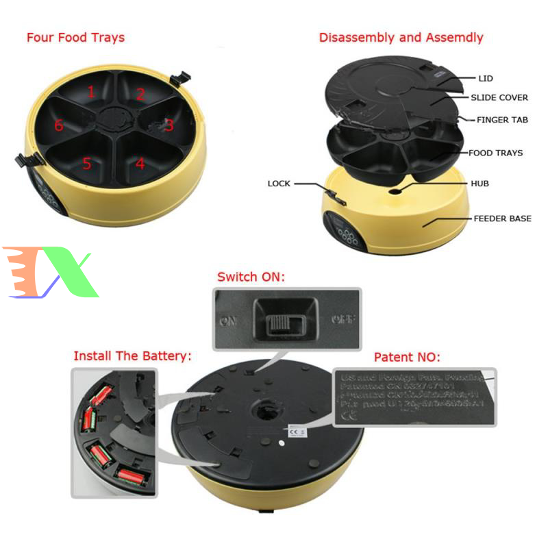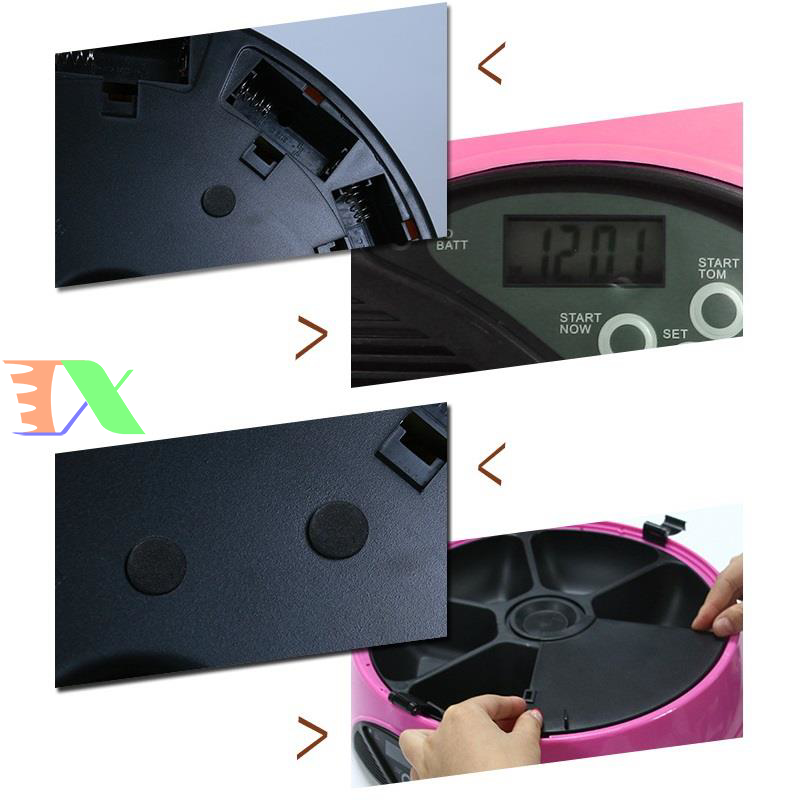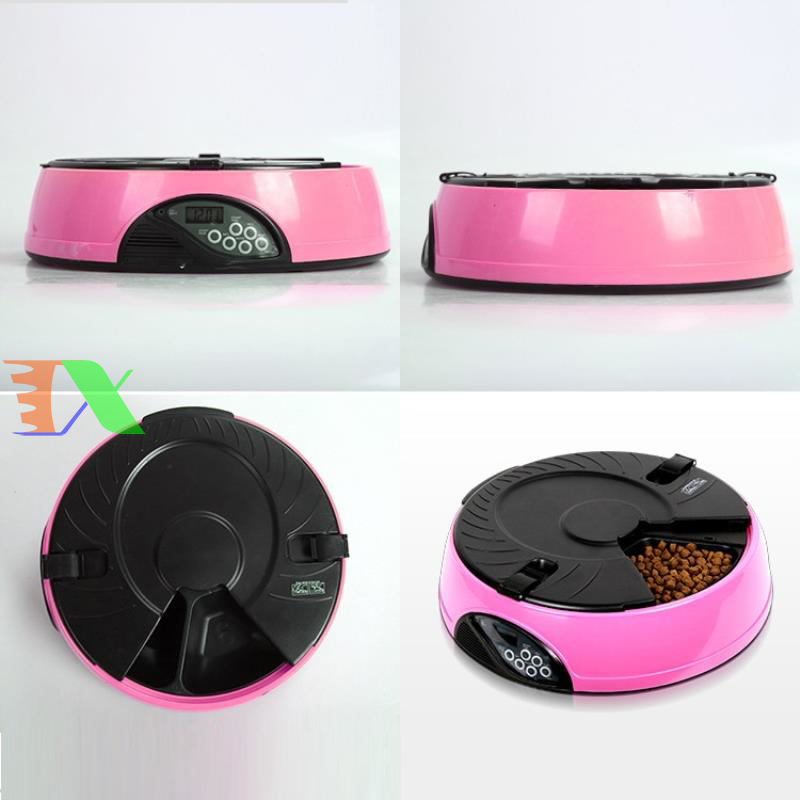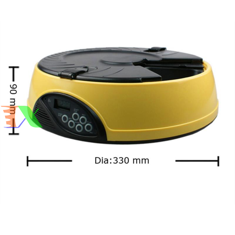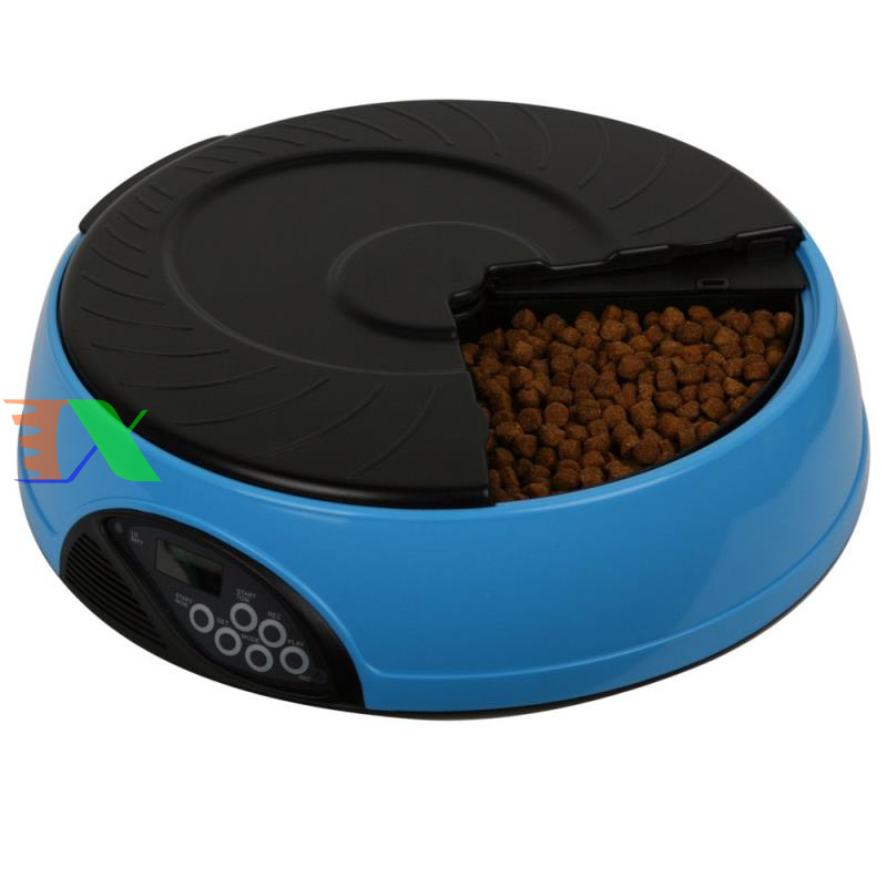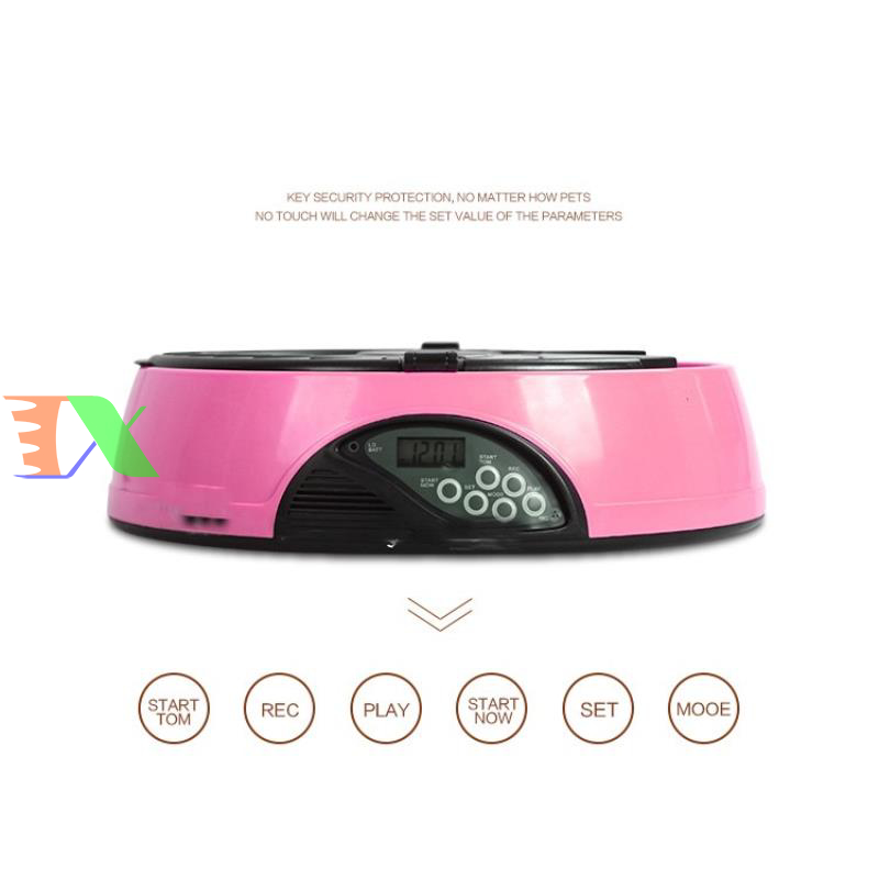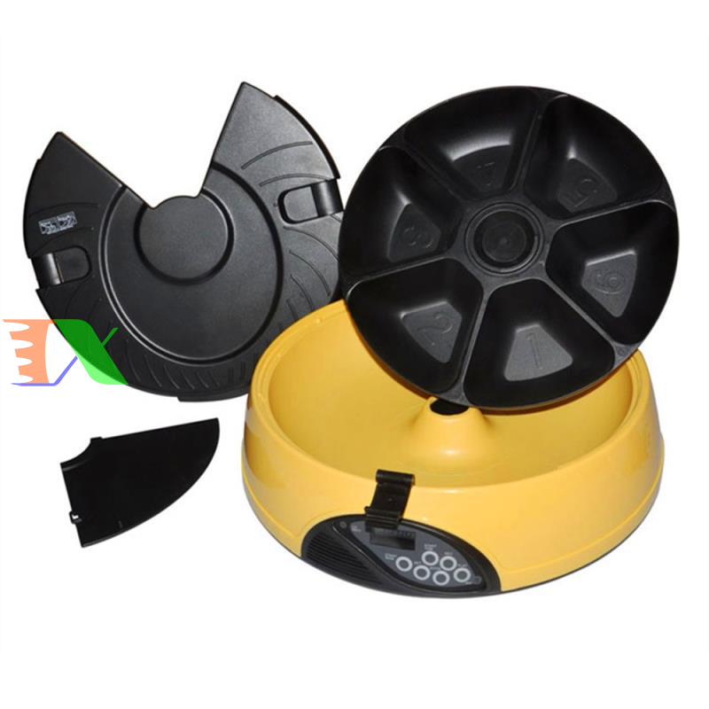 Máy tự động cho chó ăn, máy tự động cho mèo ăn. Máy hẹn giờ cho chó ăn 6 ngăn, máy hẹn giờ cho mèo ăn là Sản phẩm được làm từ nhựa cao cấp, dẻo có đồ bền cao, an toàn cho pet (chó mèo), riêng máng ăn làm từ vật liệu ABS có độ bền cao. Bình đựng thức ăn được làm từ nhựa PP, nắp bình là ABS. Sản phẩm thích hợp cho chó mèo các kích cỡ từ trung & nhỏ đến lớn.