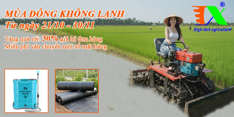 Đây là cơ hội tuyệt vời để bà con chuẩn bị cho vụ đông xuân sắp tới – mùa vụ quan trọng nhất trong năm. Các sản phẩm được áp dụng bao gồm toàn bộ hệ thống vật tư nông nghiệp: bạt phủ cỏ, dây tưới, bình xịt thuốc, máy cày, máy gieo hạt, máy ép cám, khay ươm, lưới giàn dưa leo... tất cả đều được cam kết chất lượng chính hãng Tháp Xanh.