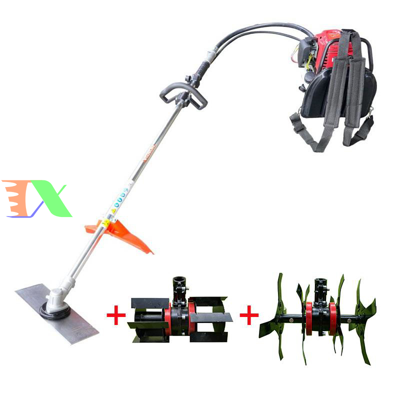 Cả hai loại máy cắt cỏ, xới đất và xạc cỏ đeo vai và đeo lưng thường được trang bị động cơ 1kw (1.5hp), máy làm việc khá hiệu quả trong môi trường đất tơi xốp, hoặc đất mềm, có thể làm thay máy bừa ruộng ở những nơi ruộng bậc thang, diện tích ngang hẹp không tiện cho việc sử dụng những máy lớn để làm việc.