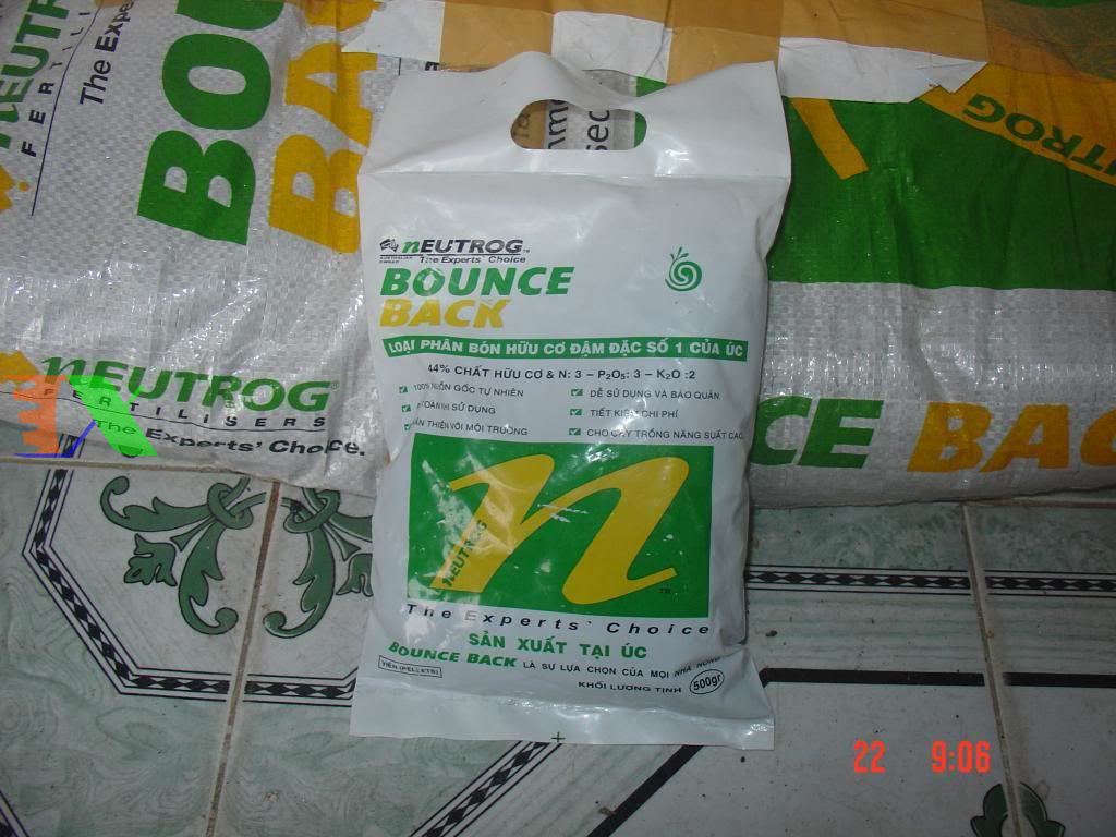 Phân Bounce -Back do Úc sản xuất : đây là 1 loại phân tan chậm nhờ sử dụng hợp chất Zeolite được sản xuất với quy trình tiên tiến nhất của Úc chất lượng cao, dạng viên nén với đặc tính. Thích hợp cho trồng bonsai, cây kiểng và nhất là Lan