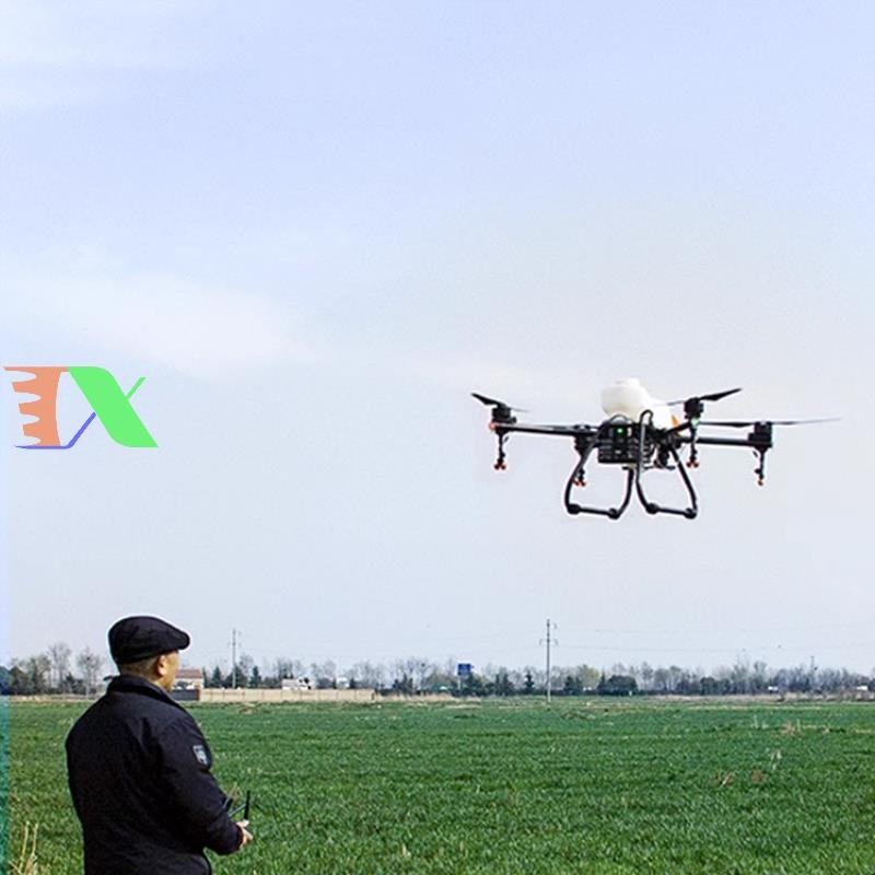 Drone là thiết bị bay không người lái có gắn bình chứa thuốc và hệ thống phun áp lực. Có thể điều khiển từ xa, lập trình đường bay, phun theo diện rộng từ trên cao.