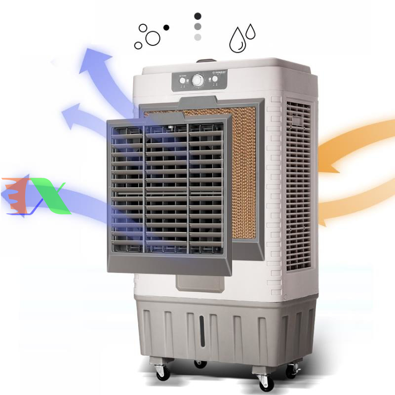 Quạt điều hòa là thiết bị làm mát không khí, hoạt động dựa trên nguyên lý bốc hơi của nước, thông qua việc sử dụng tấm làm mát (Cooling Pad). Khi hoạt động, nước được hệ thống bơm tuần hoàn đưa lên tấm làm mát, nơi sẽ diễn ra quá trình bay hơi