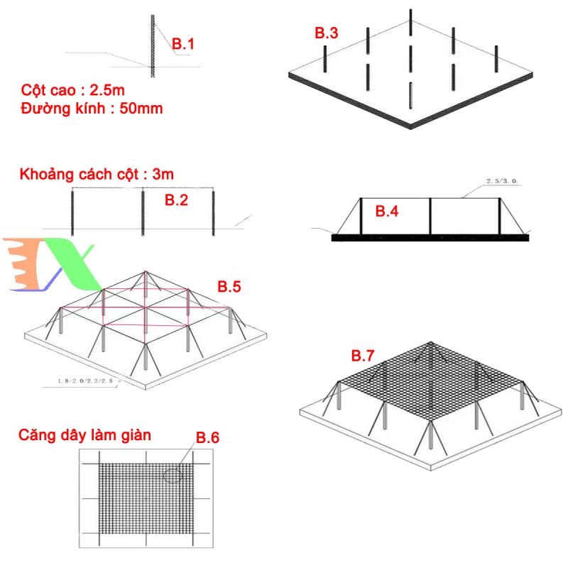 - Hỗ trợ dòng cho một số vật có giàn giáo như nho giá đỡ, bởi vì nó mịn bề mặt sẽ không gây hại vật có chi nhánh, lá và quả, chứa chống tia cực tím thành phần có thể tránh thiệt hại của ánh sáng mạnh, trong khi tính chất hóa học của nó là ổn định, axit và kiềm sức đề kháng, Và sẽ không bị ăn mòn.