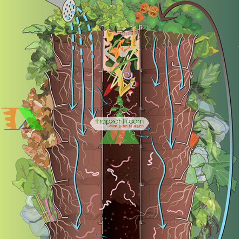 Tháp rau sạch là mô hình từ Mỹ Tận dụng rác thải hữu cơ, trồng được số lượng lớn cây trên một diện tích nhỏ. Không cần bón phân