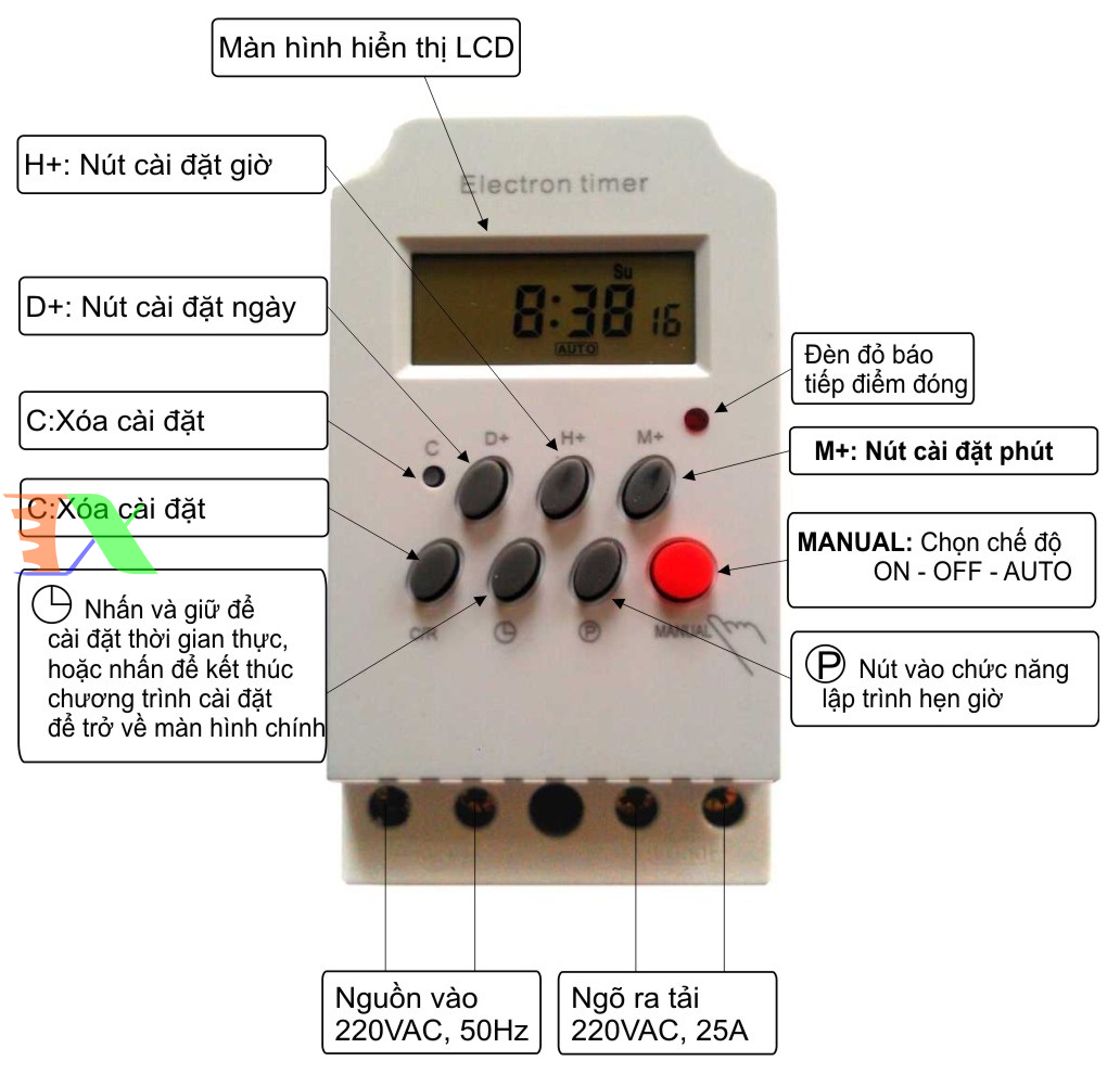 - Lắp cho biển hiệu cửa hàng , hàng ngày tự động bật , tắt đèn cho ta.