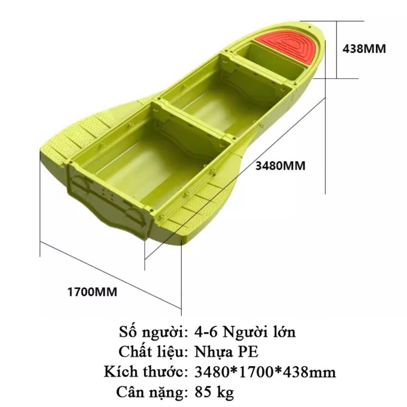 • Sức tải khuyến nghị: 4–6 người lớn hoặc 400–500kg hàng hóa