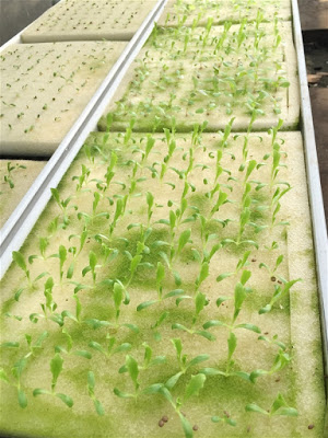 Bước 1: Chăm sóc cây giống nhỏ, nhiệt độ từ 18,3-26,6 độ C. Đến khi cây cao khoảng 4-5cm thì tiến hành trồng thủy canh.