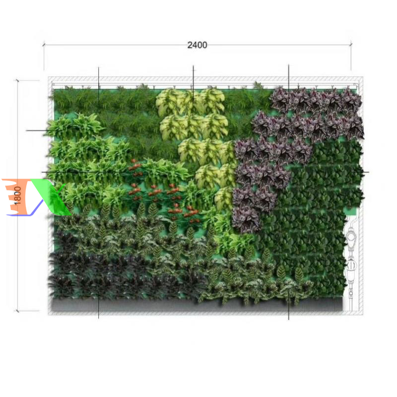 Với thiết kế kiểu mô-đul sẽ cung cấp cho người làm vườn dễ dàng linh hoạt trong việc thi công. Để có được vườn trên tường ban công, chỉ đơn giản là sắp xếp lại các modul theo chiều dọc trên bức tường rồi điều chỉnh, trồng các loại cây theo ý muốn. Có thể không hoặc có lắp đặt hệ thống tuới tự động.