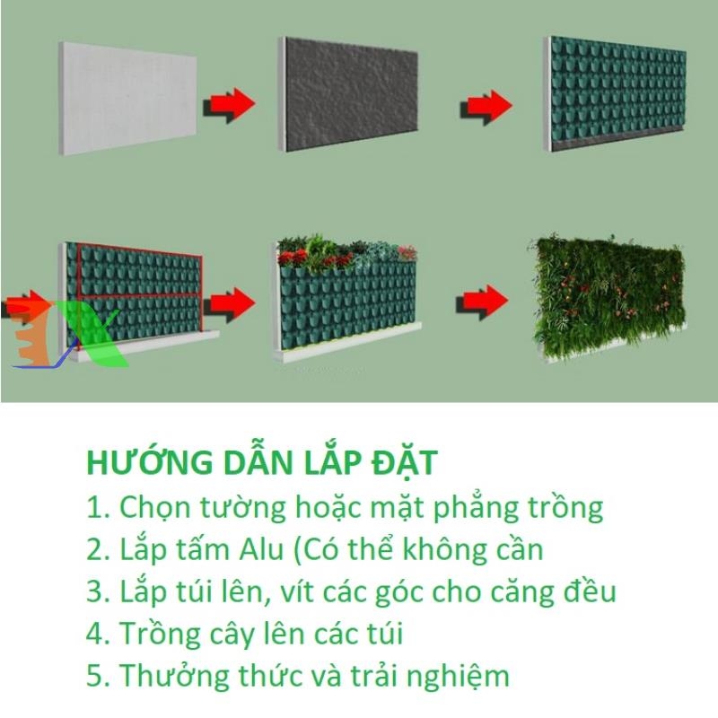 Túi vải trồng cây treo tường là giải pháp đơn giản, tiết kiệm chi phí nhưng mang lại hiệu quả cao trong việc tạo không gian xanh. Sản phẩm phù hợp cho mọi gia đình, quán cà phê, văn phòng, vừa đẹp vừa tiện dụng. Khi được lắp đặt và chăm sóc đúng cách, một bức tường xanh không chỉ làm đẹp không gian mà còn cải thiện chất lượng sống.