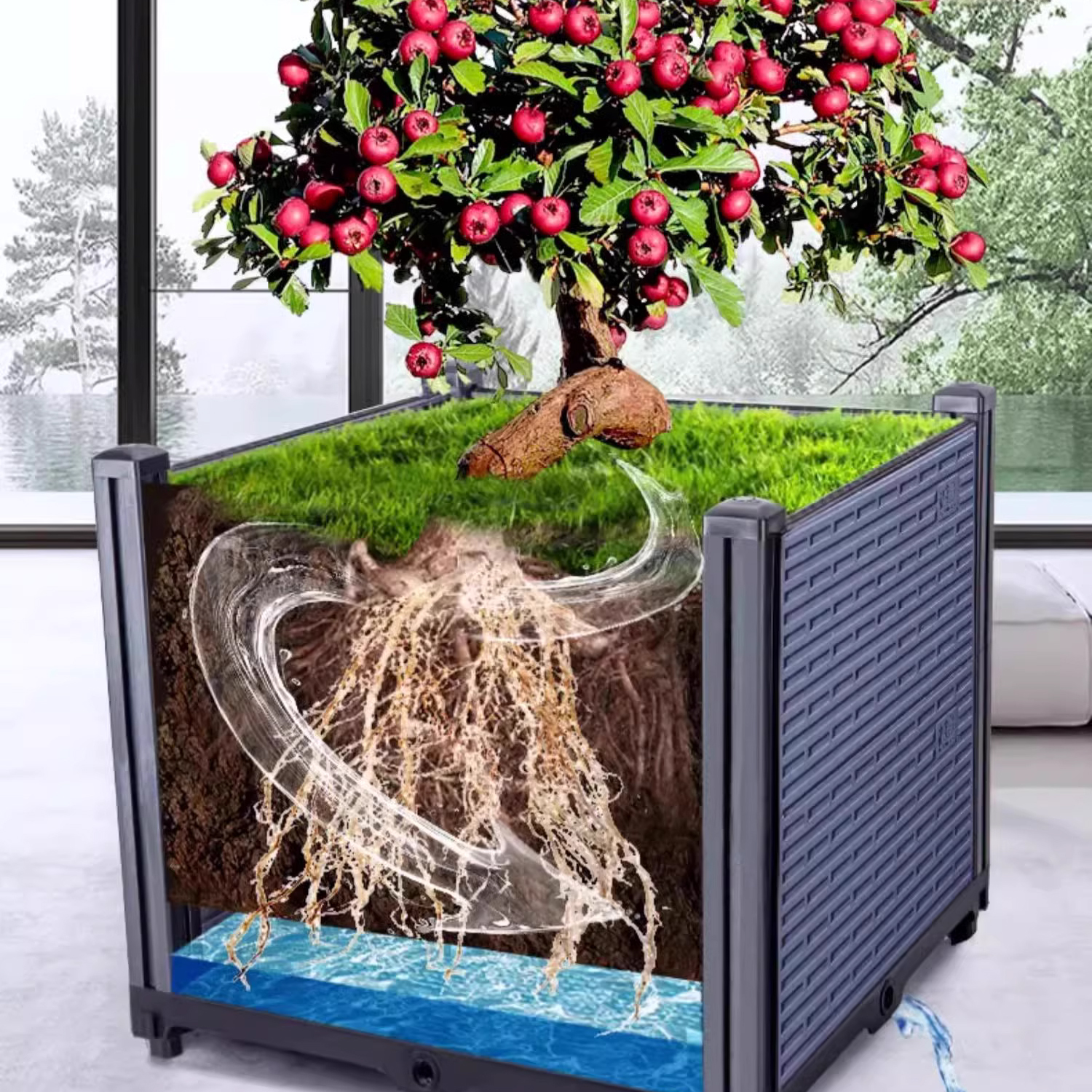 Sản phẩm được thiết kế đặc biệt có 2 lớp, lớp ngoài chứa nước, có cửa sổ kiểm tra lượng nước còn lại trong chậu chứa.