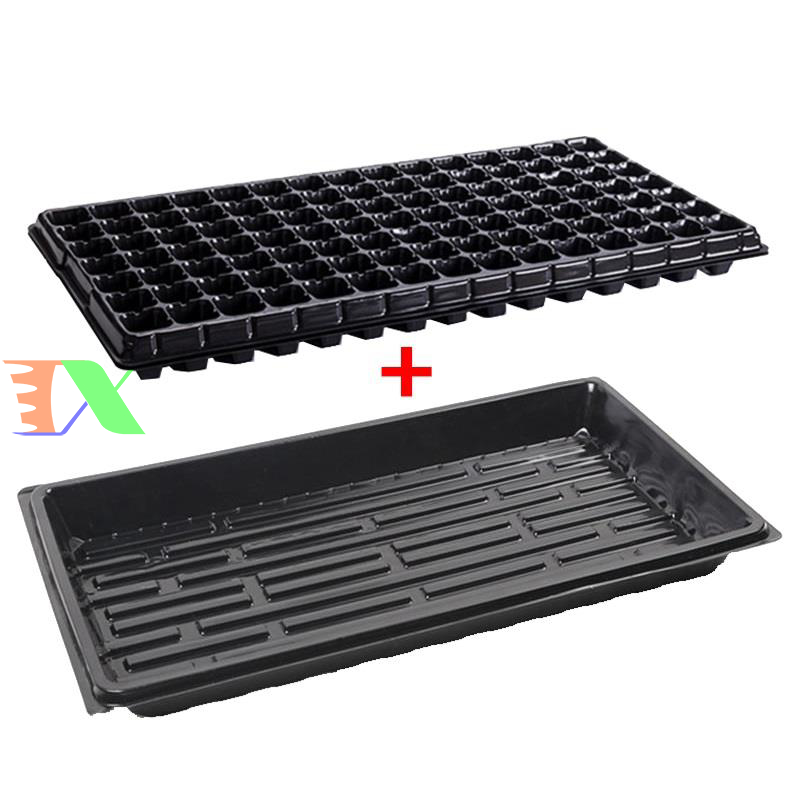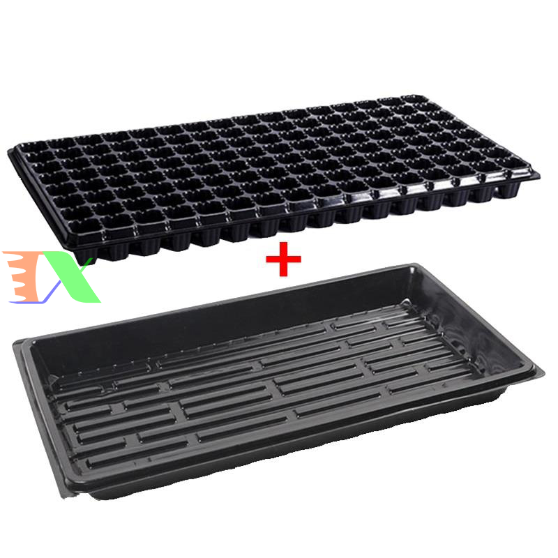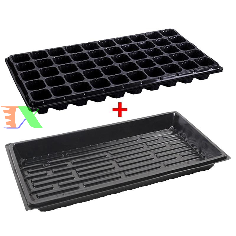 Vỉ nhựa ươm hạt giống kèm Khay chứa nước ươm cây 55*30*5.5 cm, Kit khay nhựa