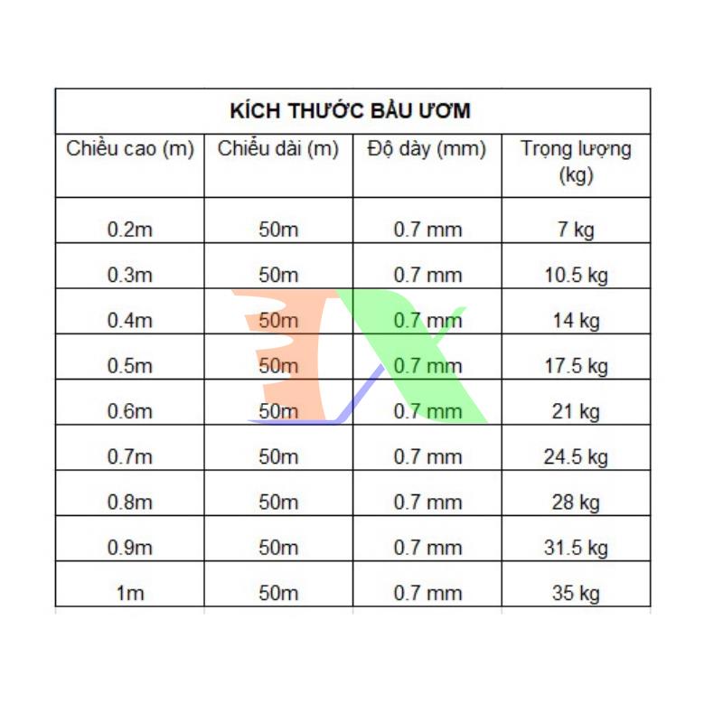 Chọn chiều cao và chiều dài theo nhu cầu từng loại cây cần ươm dưỡng (ví dụ bạn cần quấn bầu đất đường kính 30cm, thì chiều dài tương đương là 0.3 x 3.14= 0.942m