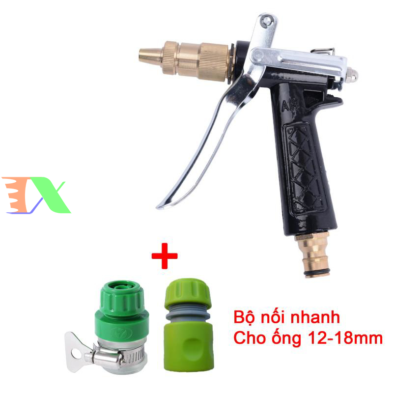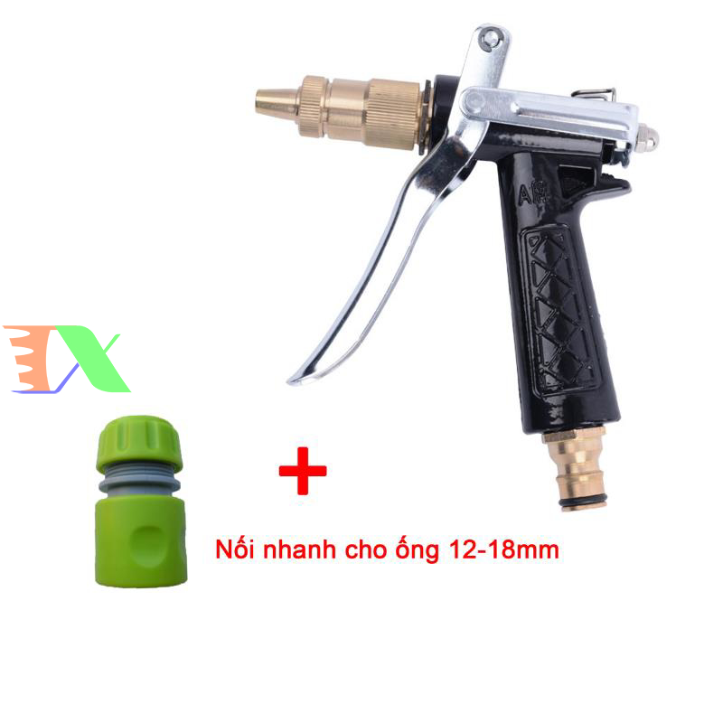 Đầu phun nước tăng áp của súng có thể phun xịt ở khoảng cách xa, lực nước càng mạnh thì xịt càng xa. Bạn có thể vặn đầu phun để chỉnh súng phun thành 1 tia nước để rửa xe hoặc tưới cây từ xa hoặc phun gần dưới dạng chùm phun xoè.